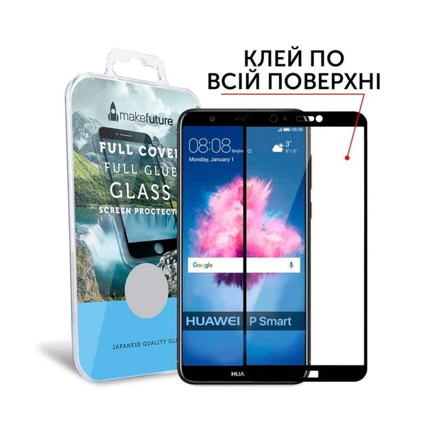 Захисне скло MakeFuture Full Cover Full Glue для Huawei P Smart Black