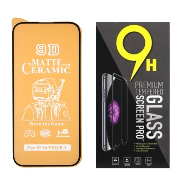 Протиударна захисна плівка Ceramics для Apple iPhone 14 Pro (A2890, A2650, A2889, A2892, A2891) з чорною рамкою, матова