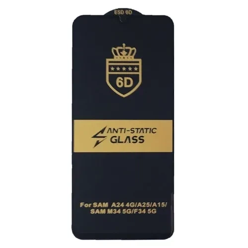 Захисне скло 6D Anti-static для Samsung A15/A25/M15 чорне тех упаковка