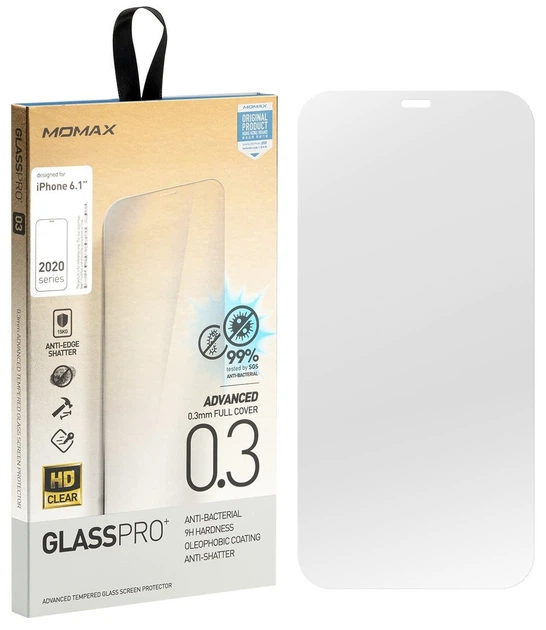 Захисне скло iPhone 12/12 Pro прозоре 0.3mm Glass Pro+ Ag+ Nano Anti-Bacteria Momax (PZAP20MBS1T)