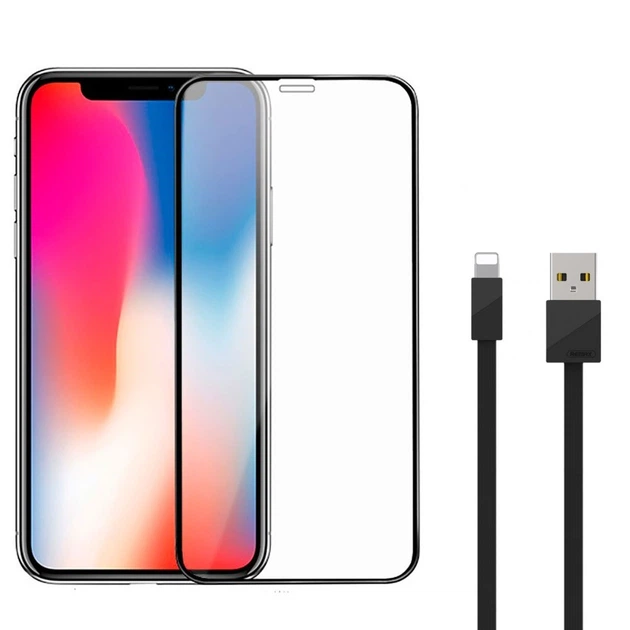 Захисне скло Remax GL-36 Zeus 3D Full Cover iPhone Xs Max плюс Lightning кабель 0.3мм матове чорне