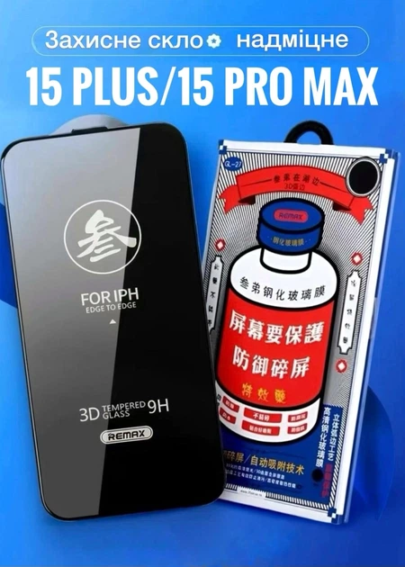Захисне скло на екран для Apple iPhone 15 Plus / 15 Pro Max REMAX Преміум Повноекранне 4-шарове 9H 3D Black