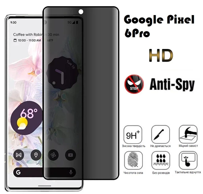 Загартоване захисне скло Анти шпигун AeronGlass з олеофобним покриттям 9H для Google Pixel 6 Pro