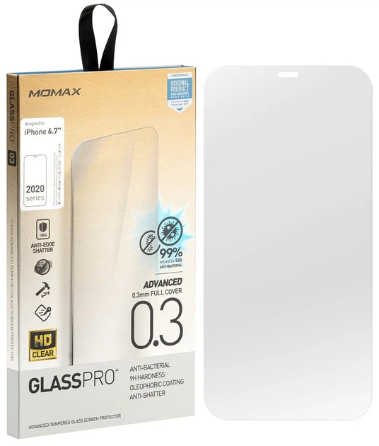 Захисне скло iPhone 12 Pro Max прозоре 0.3 mm Glass Pro+ Anti-Bacterial Screen Protector Momax
