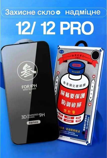 Захисне скло на екран для Apple iPhone 12/ 12 Pro REMAX Преміум Повноекранне 4-шарове 9H 3D Black