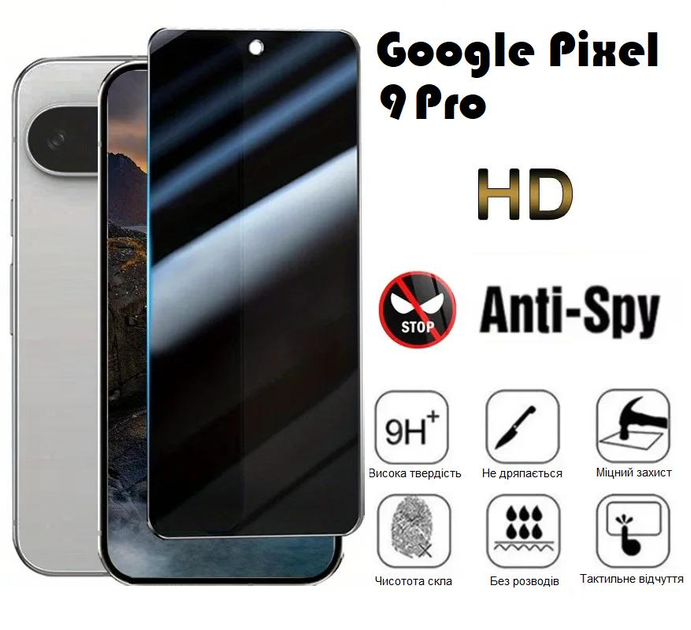 Загартоване захисне скло Анти шпигун AeronGlass з олеофобним покриттям 9H для Google Pixel 9 Pro
