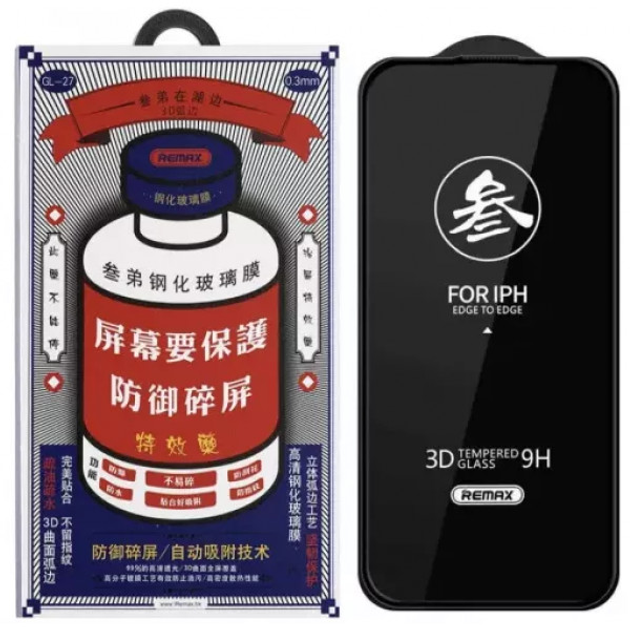 Захисне скло на екран для Apple iPhone 15 Pro Max Remax Blue GL-27 Повноекранне Жировідштовхуюче 4-шарове 9H 3D Black