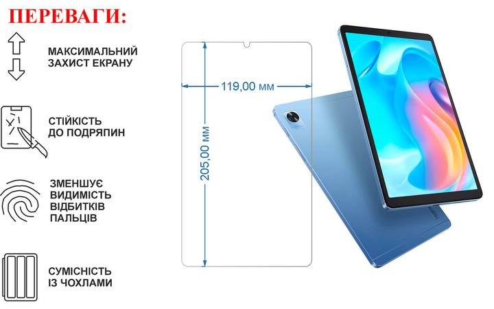 Захисне скло для планшета realme Pad Mini, товщина 0,28 мм