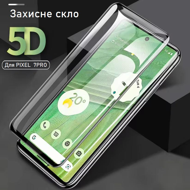 Захисне скло 5D повнорозмірне для Google Pixel 7Pro ( Заокруглені боки )