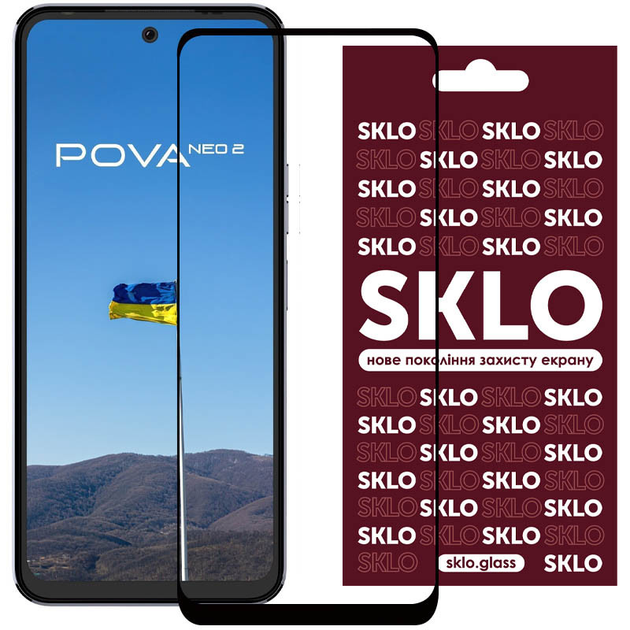 Протиударне Захисне Скло SKLO 3D (full glue) для TECNO Pova Neo 2 (LG6n) Чорний