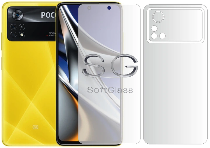 Бронеплівка Poco X4 Pro 5G Комплект: для Передньої та Задньої панелі поліуретанова SoftGlass