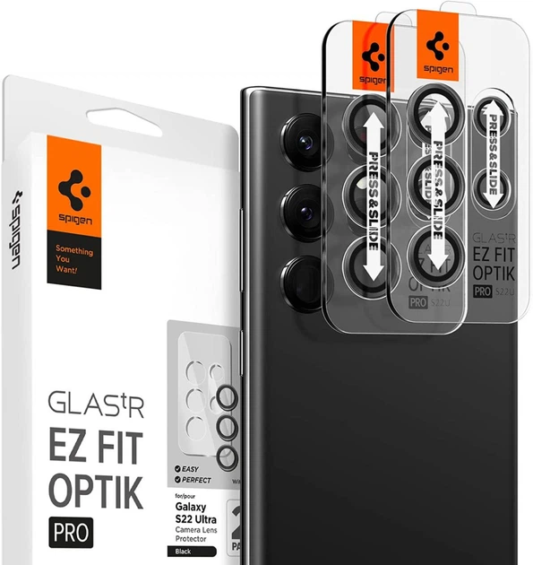 Захисне скло Spigen для камери Samsung Galaxy S22 Ultra - EZ Fit Optik Pro (2шт), Black (AGL04751)