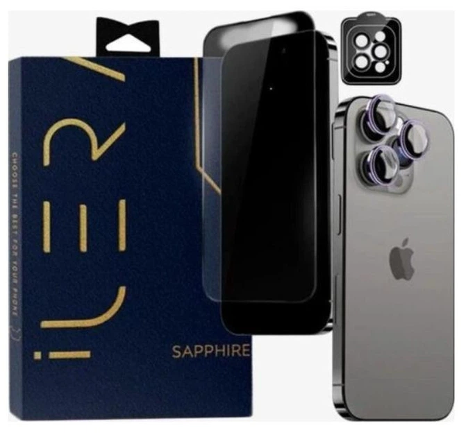 Захисне преміум скло iLera Sapphire Ultra+ Glass для iPhone 14 Pro + iLera лінзи на камеру Black