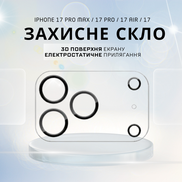 Захисне скло на камеру iPhone 17 / 17 Pro / 17 Pro Max / 17 Air – 3D High Definition, прозоре, загартоване, антиударне