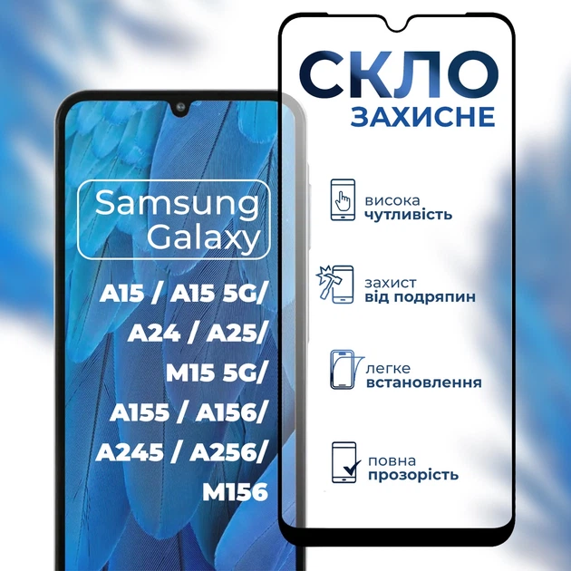 Захисне скло на Samsung Galaxy A15/ A15 5G/ A24/ A25/ M15 5G/ A155/ A156/ A245/ A256/ M156 на весь екран 9D Shieldy