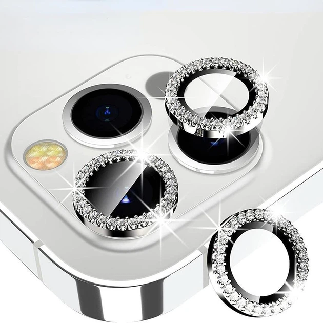 Захисне скло на камеру для iPhone 12 Pro з камінням Срібло