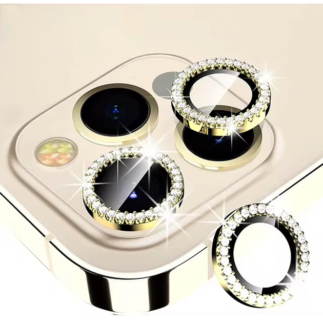 Защитное стекло на камеру для iPhone 14 Plus с камнями Золото
