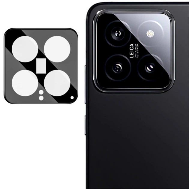 Захисна рамка з антивідблисковим склом Tempered Glass для Xiaomi 14 на задню камеру, Black