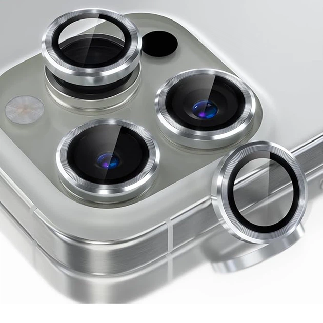 Захисне скло з рамкою Eagle Eye для iPhone 16 Pro / 16 Pro Max на задню камеру silver