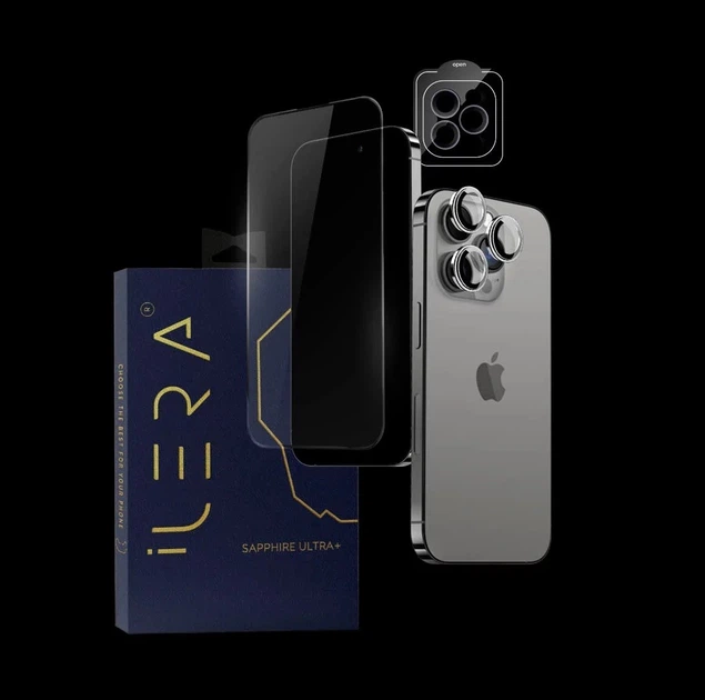 Захисне преміум скло iLera Sapphire Ultra+ Glass для Apple iPhone 14 Pro Max + iLera лінзи на камеру Black