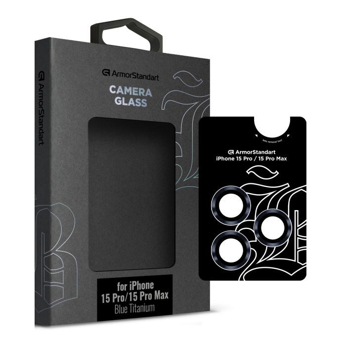 Скло захисне Armorstandart Camera glass Supreme Black Icon iPhone 15 Pro/15 Pro Max Blue Titanium (ARM76594) ARM76594