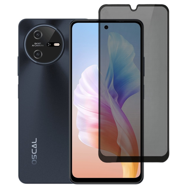 Захисне скло Fiji Privacy для Oscal Tiger 12 антишпигун Anti-peeping повне проклеювання чорний