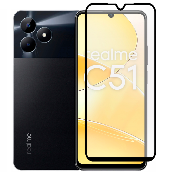 Захисне скло для телефона Realme C51 протиударне повноекранне чорне