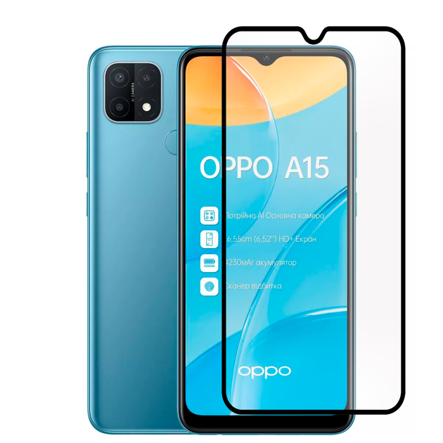 Захисне скло для телефона OPPO A15 протиударне повноекранне чорне