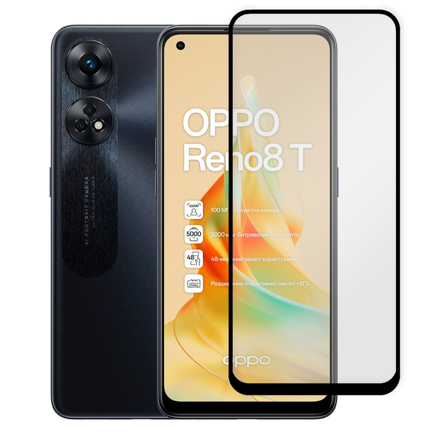Захисне скло для телефона OPPO Reno 8T 4G протиударне повноекранне чорне