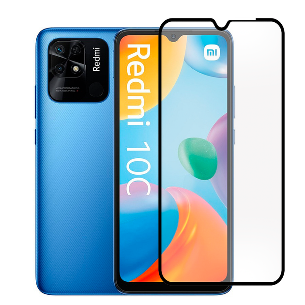 Захисне скло для телефона Xiaomi Redmi 10C протиударне повноекранне чорне