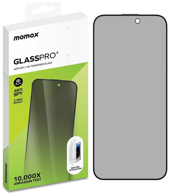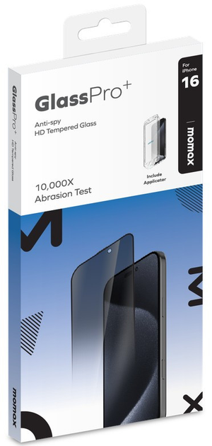 Захисне скло iPhone 16 з чорною рамкою антишпигун 9H Glass Pro+ Anti-Spy HD TRempered Glass Momax (PZAP24DIVSD)