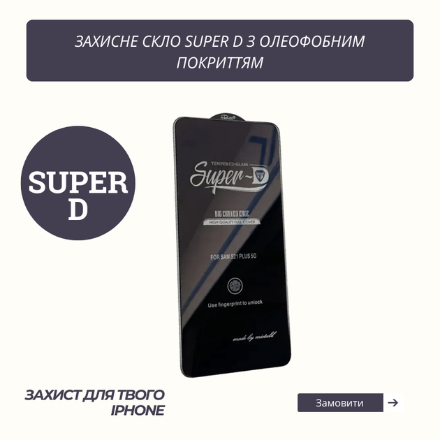 Скло захисне загартоване олеофобне 9H Super D для iPhone|Айфон 17