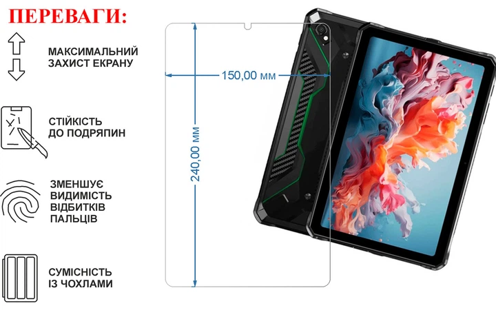Захисне скло для планшета DOOGEE R20, товщина 0,28 мм