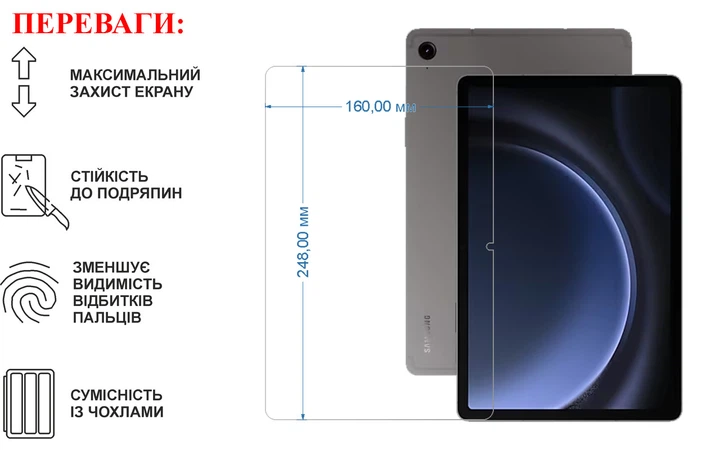 Захисне скло для планшета Samsung Galaxy Tab S9 FE (2023), товщина 0,28 мм