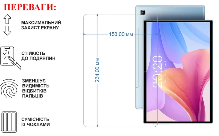 Захисне скло для планшета Teclast P20S (2022), товщина 0,28 мм