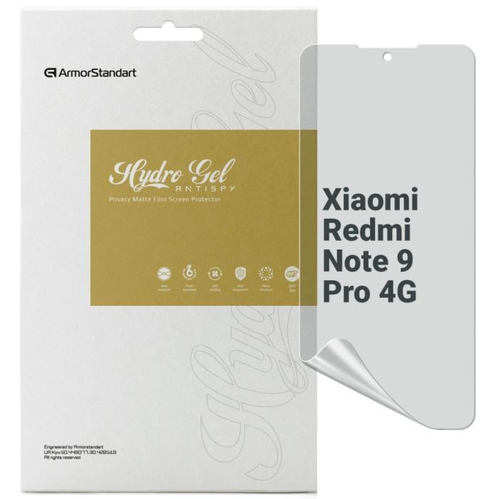 Призначення - для телефону, Вид покриття - захисний, гідрогелева, Сумісність з моделями - Xiaomi Redmi Note 9 Pro, Кількість в упаковці - 1 шт