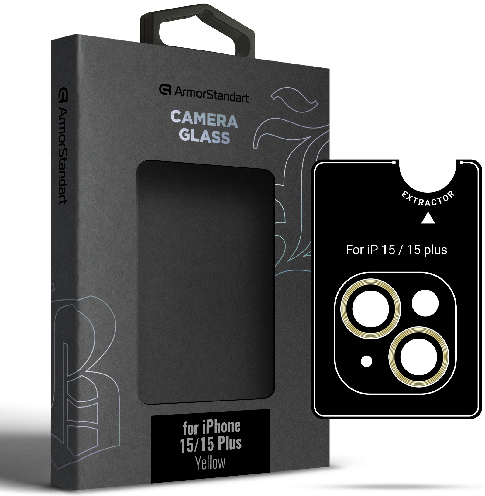 Захисне скло для камери ArmorStandart Supreme Black Icon для iPhone 15/15 Plus Yellow (ARM76587)