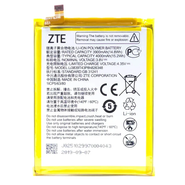 Акумулятор Li3839T43P8h826348, ZTE Blade A7 2020 / Blade A7s 2020 / Optus X Pro / Telstra Evoke Plus 2, 3900mAh, PRC