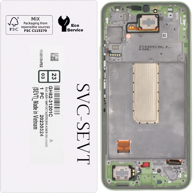 Дисплей Samsung A346 Galaxy A34 чорний, Amoled, , сервісне упакування, з рамкою зеленого кольору, Lime, GH82-31201C
