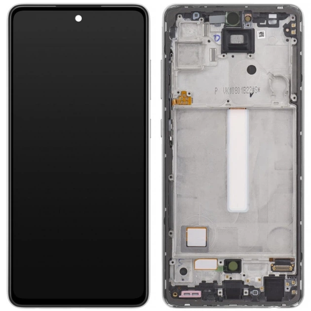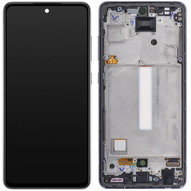 Дисплей Samsung A525 Galaxy A52/A526/A528 чорний, TFT без функції відбитка пальця, з рамкою сріблястого кольору, Awesome Whi