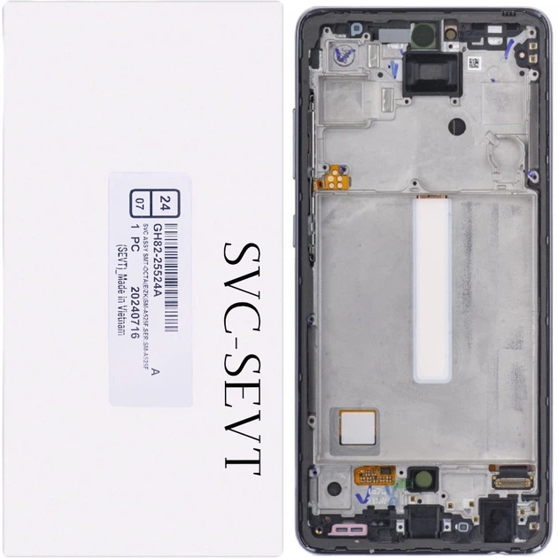 Дисплей Samsung A525 Galaxy A52/A526/A528 чорний, OLED, з рамкою сріблястого кольору, Awesome White