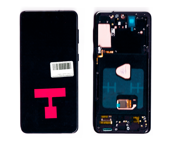 Дисплей Samsung G991 Galaxy S21 5G чорний, OLED, з рамкою рожевого кольору, Phantom Pink / Violet