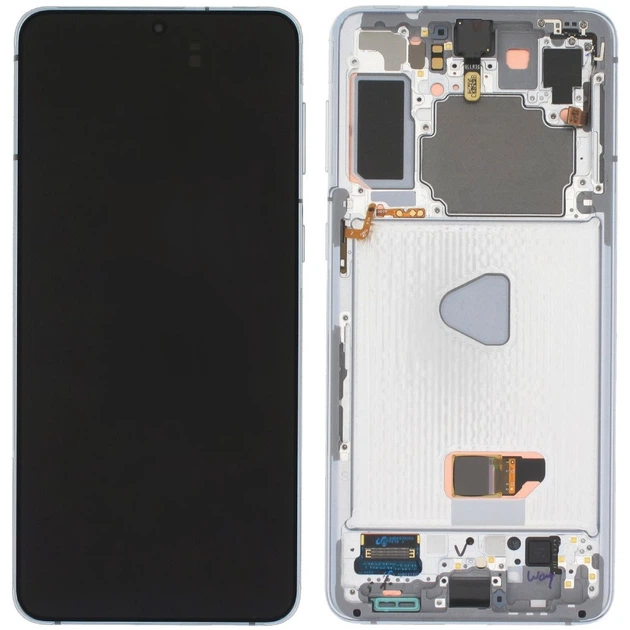 Дисплей Samsung G991 Galaxy S21 5G чорний, OLED, з рамкою сріблястого кольору, Phantom White