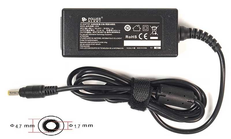 Блок живлення для ноутбуків PowerPlant ASUS 220V, 12V 36W 3A (4.8*1.7) AS36A4717