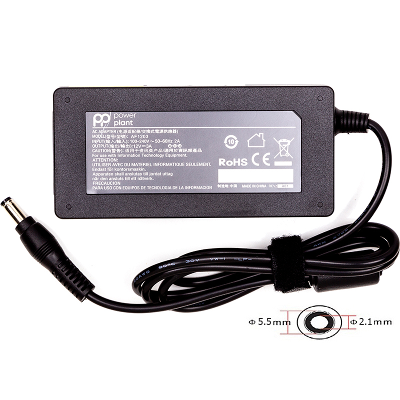 Блок живлення для ноутбуків PowerPlant ASUS 220V, 12V 36W 3A (4.8*1.7) AS36A4817