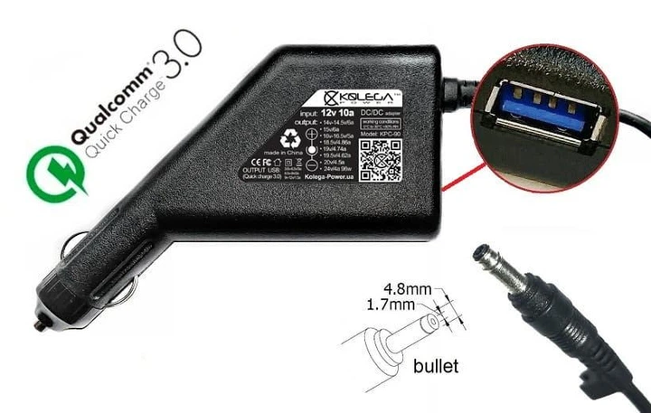 Автомобільний Блок живлення Kolega-Power для ноутбука (QC3.0) HP/LG 18.5V 4.9A 90W 4.8x1.7 bullet 47542x16 (KPC-90-19-4817b)