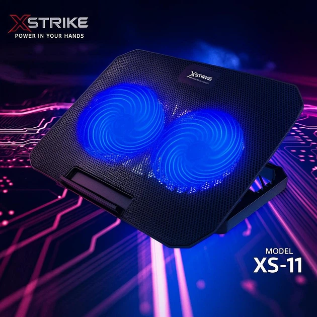 Охолоджуюча підставка для ноутбука з 2 вбудованими кулерами USB Xstrike XS-11 9-17 дюймів Чорна