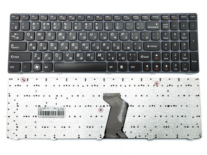Клавіатура для Lenovo IdeaPad Z580, G580, G585, Z580A, Z585 (RU Black, сіра рамка)
