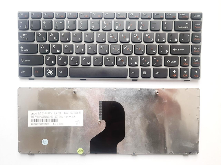Клавіатура для ноутбуків Lenovo IdeaPad Z450, Z460, Z465 Series чорна із сірою рамкою UA/RU/US