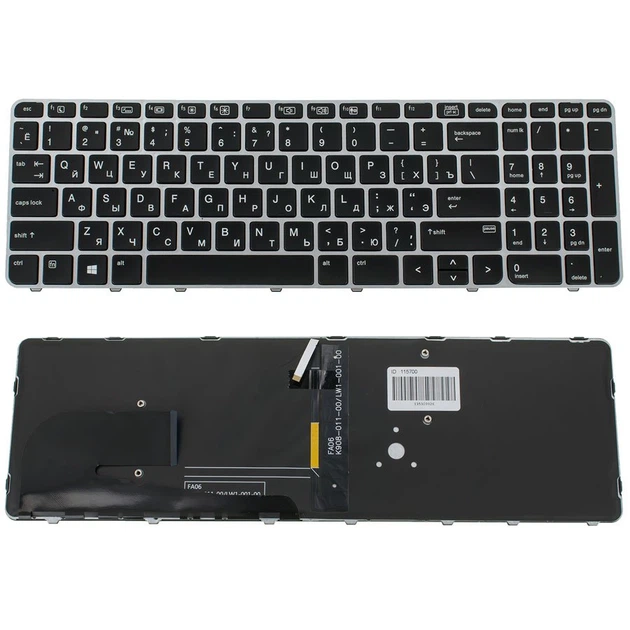 Клавіатура для ноутбука HP EliteBook: 850 G4 rus, чорна, підсвічування клавіш, без джойстика, срібла frame